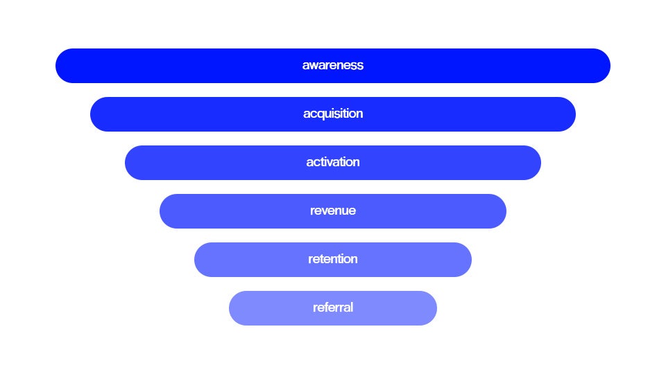 These are a method of categorising different metrics and KPIs, and consists of metric categories; Awareness, Acquisition, Activation, Revenue, Retention, Referral. Now you see the AAARRR?