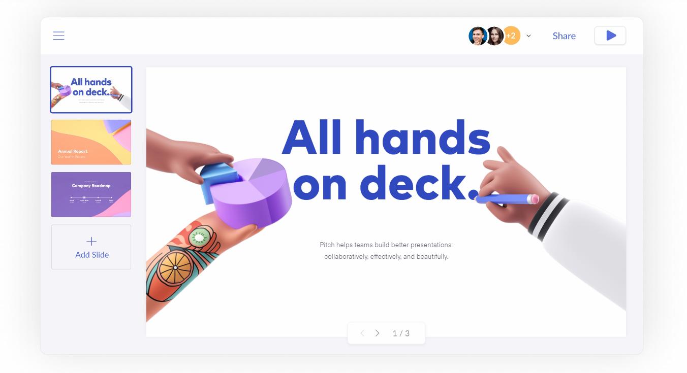 For Pitch, collaborative presentation software, sharing one's work is the backbone of their product. Using Pitch, users can work together on a single presentation, exchange comments, and track the workflow of each task.
