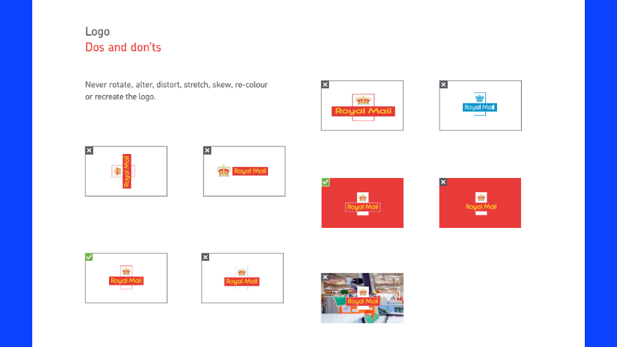 Branding can be a great creative exercise, but it’s good to set boundaries to keep the creatives on planet earth. As the UK’s postal service had demonstrated, not all contexts are ideal for its logo and colour scheme. In these cases, there’s no better way to define your brand’s limits than with an undisputed ‘do’s and don’ts’ page!