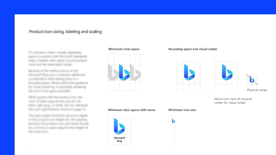Whether you’re ranked 1st or 31st on Alexa, any prolific search engine needs to define the parameters for using its logo. Like Microsoft Bing, your brand is no different in this case, as all icons and imagery should be well-presented, with exact proportions and pixel values.
