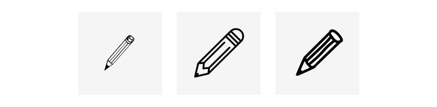 Style can also refer to imagery used to convey your brand identity. But in this case, even the most straightforward websites and imagery should abide by a consistent style. In that, line thickness, shading, and shapes should also remain somewhat correlated. Even the simplest deviations of style can reflect poorly on your brand – take, for example, the pencil icon below.