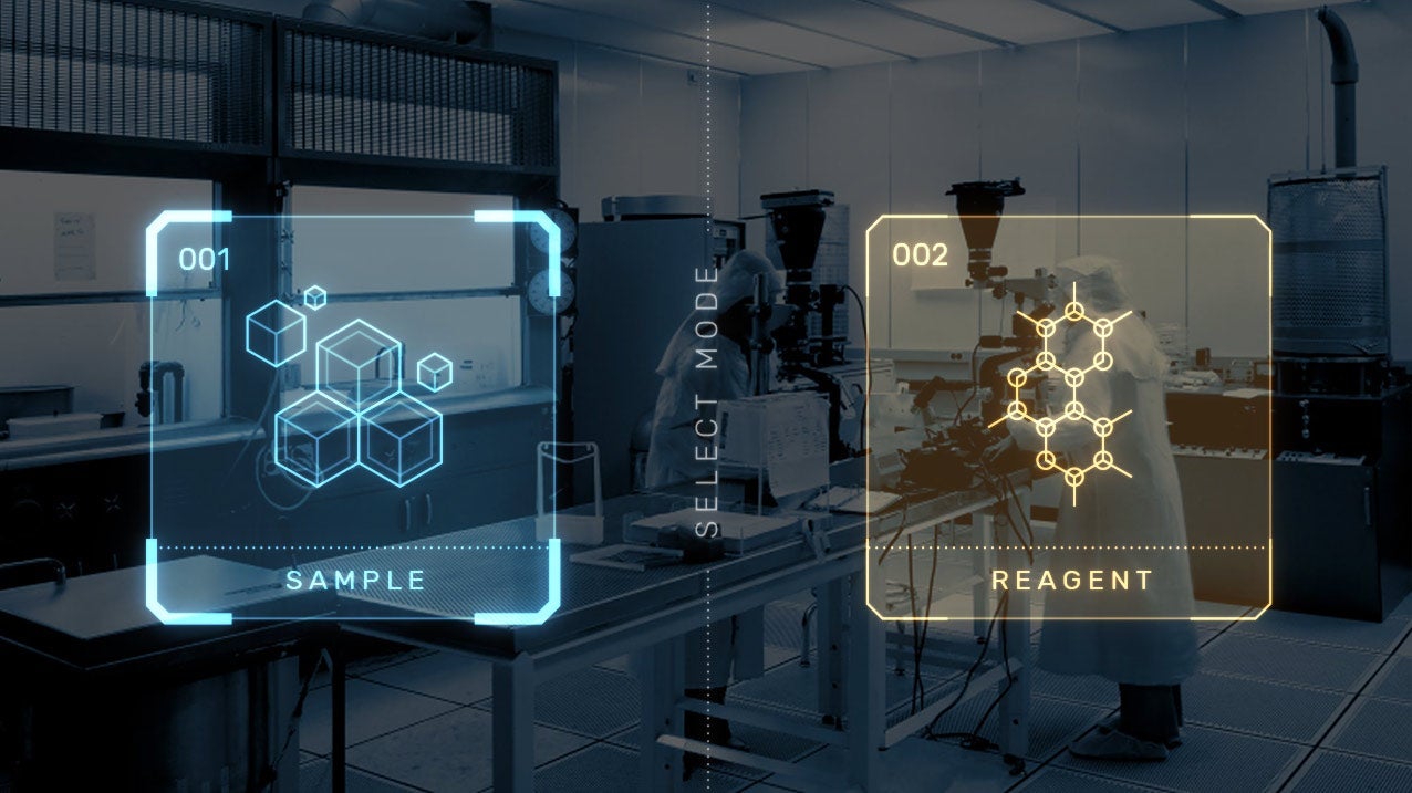 We designed a mixed reality interface that is nonintrusive to the user. It enables data access with HoloLens, control the environment using voice commands and hand gestures, and scan the samples. The interface also guides scientists through the process, ensuring safety at the laboratory.Sketches, storyboards and preliminary designs let us create an interactive prototype we used to test our assumptions with lab workers before designing the UI.